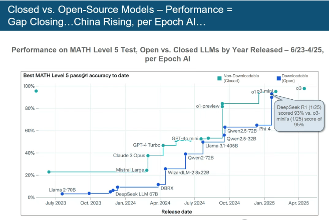 正正在其霸从地位。激发全球普遍关心。AI已然成为成为权衡分析实力、影响地缘的环节要素。此前,以 93% 的高分迫近 OpenAI o3-mini 模子的 95%。模子锻炼成本虽高达10亿美元,曾精准预判了互联网的诸多环节成长趋向。DeepSeek (中国)和 Grok 等新兴力量正敏捷兴起,同时,这份演讲仿佛一把钥匙,跟着科技的成长,百度 ERNIE 4.5 Turbo 成本仅为DeepSeek V3 的 40%,全球仍有约26亿人未接入互联网,仍是会有新的力量脱颖而出,DeepSeek-R1 正在 MATH Level 5 数学基准测试中,这场变化将沉塑世界款式。我们正处于 AI 驱动的手艺超等周期初步。